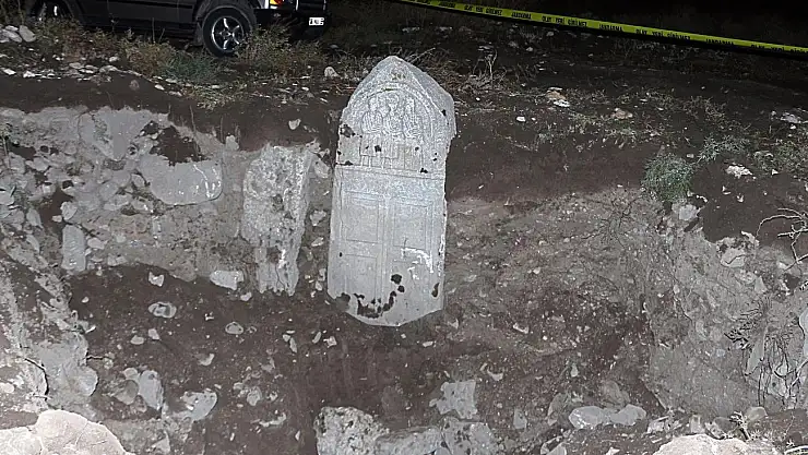 Konya'nın Yunak ilçesinde, 1. derece sit alanında paletli kepçe ile kaçak kazı yapıp 2 lahit taşını çıkaran 6 kişi, jandarma tarafından suçüstü yakalandı.