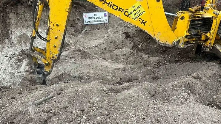 Manisa'nın Soma ilçesinde jandarma ekipleri tarafından iş makinesi ile kaçak kazı yapan 6 şüpheli şahıs suçüstü yakalandı.
