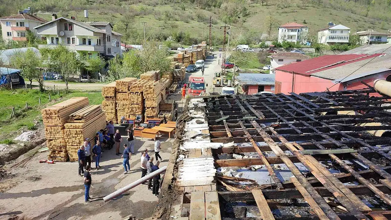 Bartın'ın Ulus ilçesinde bir kereste fabrikasında çıkan yangın kısa süreli paniğe neden oldu.