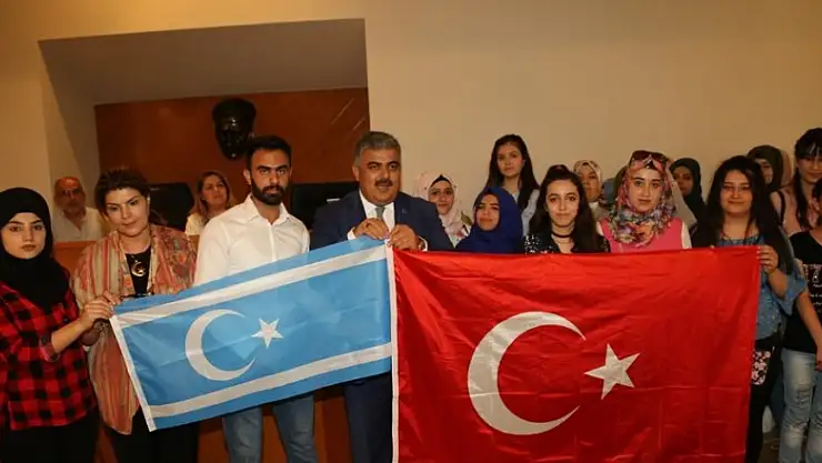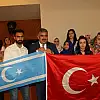Daha sonra Özgüven Kerküklü öğrencilerin takdim ettiği Türkmen Bayrağını aldı ve onlara Türk Bayrağı hediye etti.
