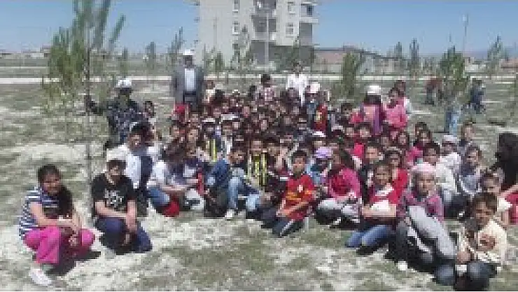 Karapınar Cumhuriyet İlkokulu öğrencileri, kermesten elde ettikleri gelirle 120 fidan dikti