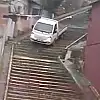 Kestirmeden inmek için aracını merdivenlere sürdü
