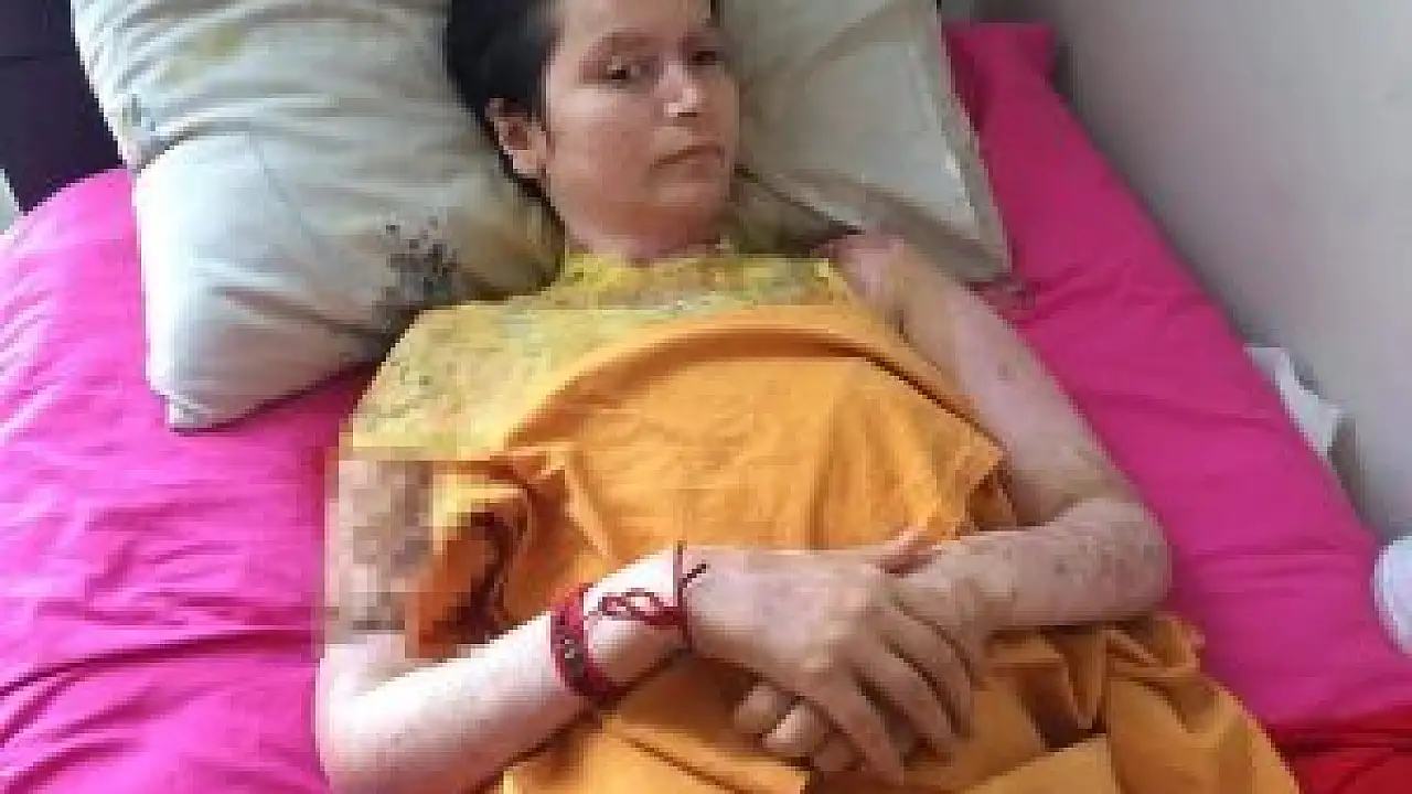 Kezzapla yakılan kadın, çocuklarına sarılmak istiyor