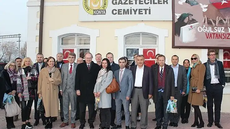 25 farklı ülkenin büyükelçileri ve Avrupa'nın farklı ülkelerinden Konya'ya gelen heyet, Konya Gazeteciler Cemiyeti'ni ziyaret etti. Ziyarette, Türkiye'de ve Konya'da gazetecilik üzerine değerlendirmelerde bulunuldu.