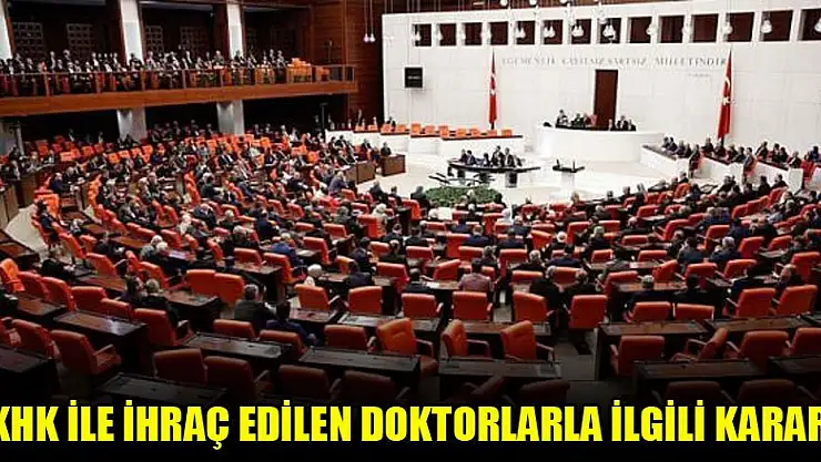 KHK ile ihraç edilen doktorlarla ilgili 5. madde, TBMM Genel Kurulu'nda alınan kararla değiştirildi. Buna göre, söz konusu doktorlar özel hastanelerde çalışabilecek.