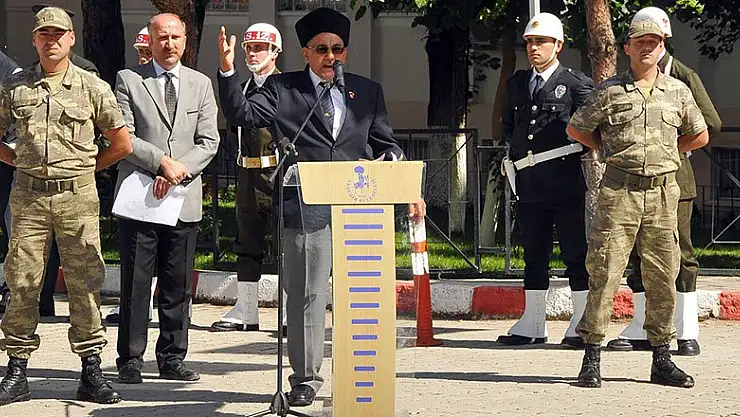 Konya'nın Akşehir ilçesinde '19 Eylül Gaziler Günü' münasebetiyle düzenlenen törende Kıbrıs Gazisi 'Vatan için gaziyiz biz' isimli şiiri coşkuyla okudu.