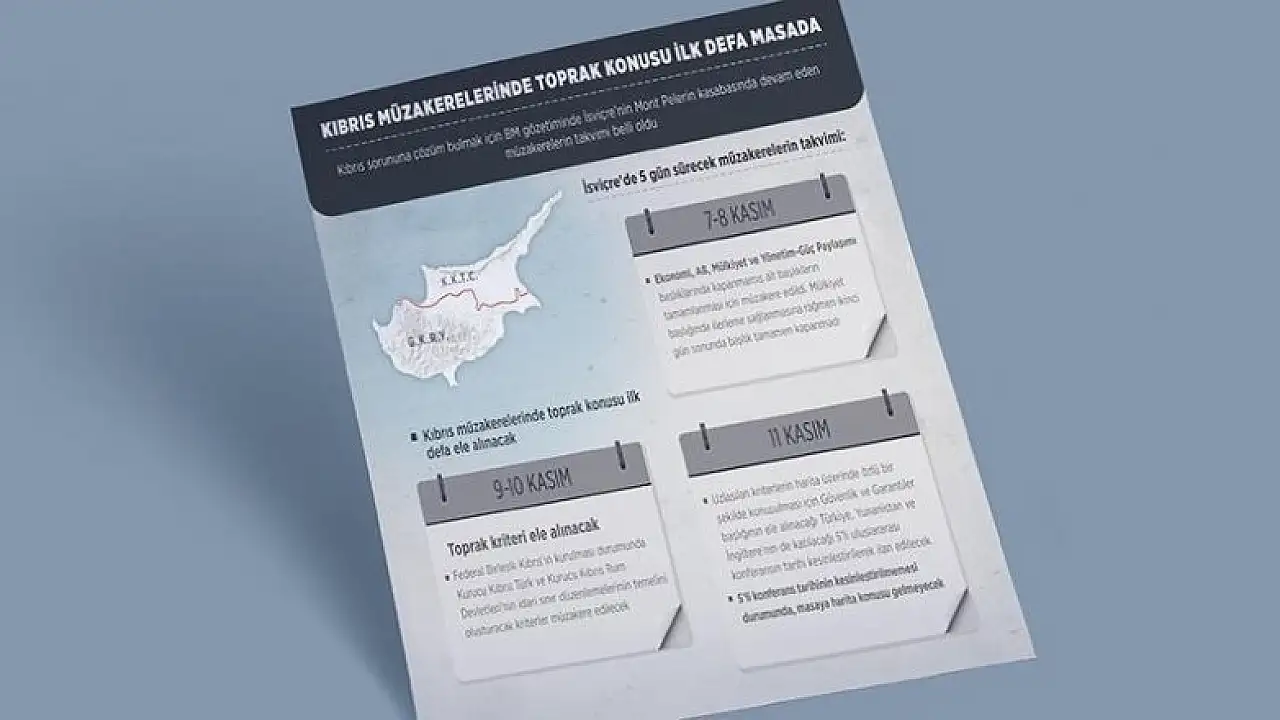 5’li konferans tarihinin kesinleştirilmemesi durumunda, masaya harita konusunun gelmeyeceği ve Kıbrıs'ta varılan ve BM tarafından liderlere yazılı olarak iletilen mutabakatın bozulacağı ve sürecin ilerleyemeyeceği kaydedildi.