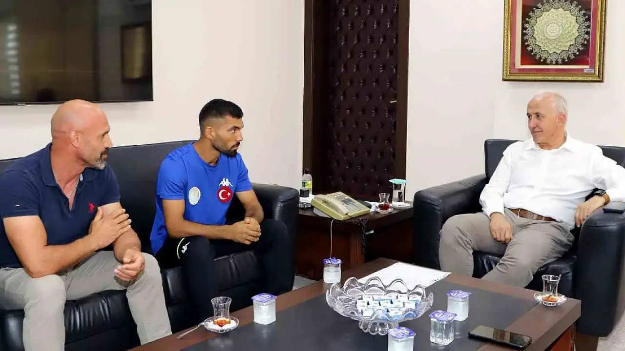 Akdeniz Belediye Başkanı Mustafa Gültak, Konya'da düzenlenen '5'inci İslami Dayanışma Oyunları'nda Türkiye'yi temsil edecek olan Kick Boks sporcusu Hatip Emlek ve Antrenörü Nasır Kandemir'i makamında ağırladı.