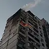 Ukrayna Acil Durum Servisi'nden yapılan açıklamaya göre binanın 16'ncı katına isabet eden roket büyük hasara yol açtı.