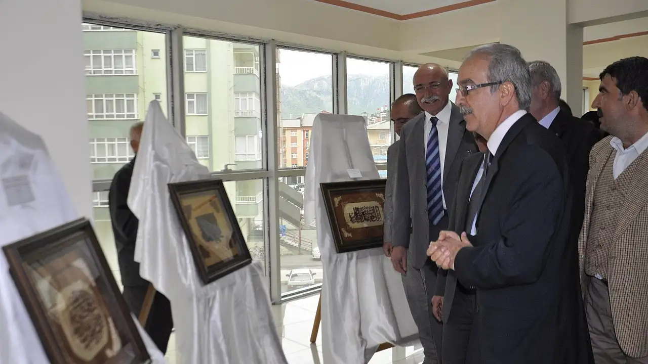 Konya'nın Seydişehir ilçesinde Hat Sanatçısı Mehmet Elbi, 'Kıl Testere ile Ahşabın Dansı' adlı 5. kişisel sergisini açtı.
