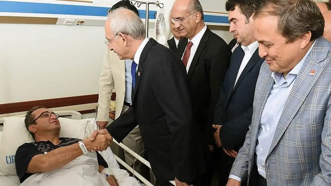 CHP Genel Başkanı Kemal Kılıçdaroğlu, Aydın'da silahlı saldırıda yaralanan genel başkan yardımcısı Bülent Tezcan'ı hastanede ziyaret etti.