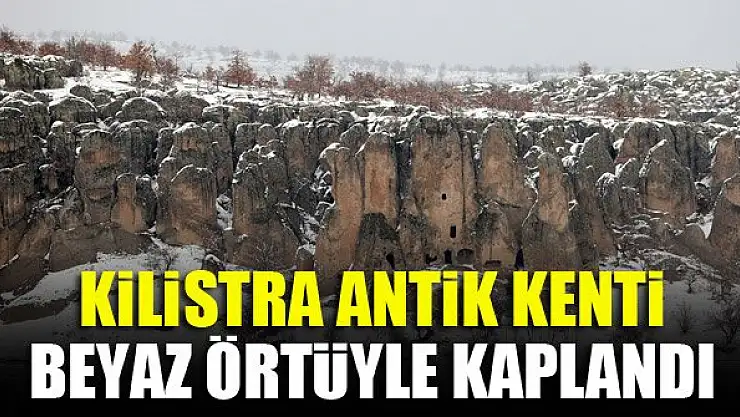 Konya'nın merkez Meram ilçesinde, oluşumuyla Kapadokya'yı andıran Kilistra Antik Kenti, kar yağışıyla beyaza büründü.
