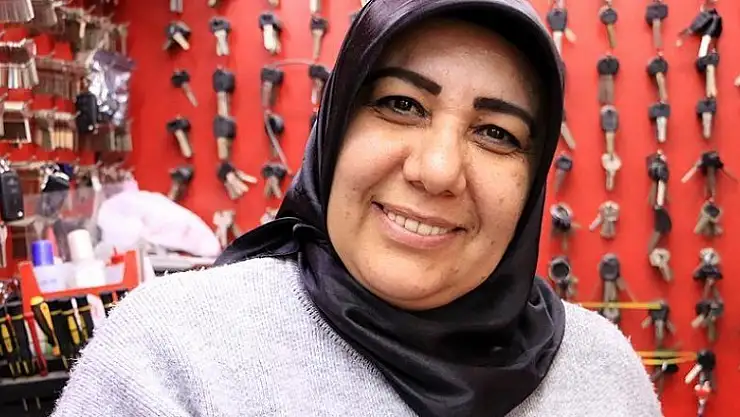 Eskişehir'de, evlendikten sonra, anahtarcı eşinin mesleğine merak saran, 8 yıl önce de ustalık belgesi alan 45 yaşındaki kadın, çilingirlik yapıyor.