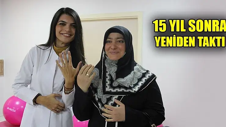 Konya'da yaşayan Hacer Tırpan, fazla kiloları nedeniyle parmağına gelmeyen evlilik yüzüğünü, 6 ayda 25 kilogram vererek, 15 yıl sonra yeniden takmanın mutluluğunu yaşıyor