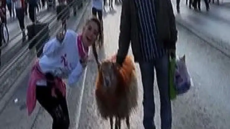 4 yıl önce Kurban Bayramı'nda kesmek için satın aldığı fakat kesmeye kıyamadığı kınalı kuzusuyla 37. Vodafone İstanbul Maraton Koşusuna katılan bir yarışmacı, ilginç görüntüler oluşturdu.