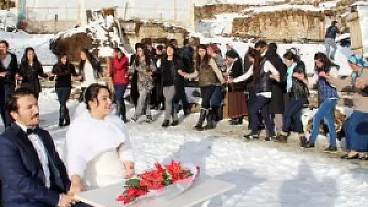 Kır düğünü yerine kar düğünü yaptılar