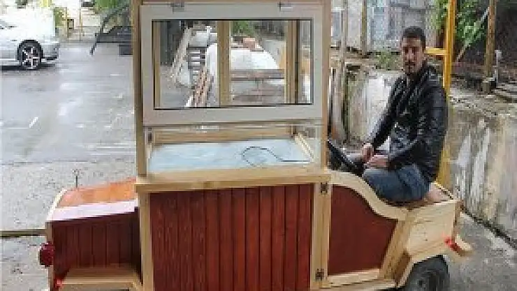 Hocaoğlu, aracın yapımında benzinli mini motor, dört tekerlek, direksiyon, elektronik aksam, ahşap dış yapı ve raflar için cam bölme kullandığını belirtti.