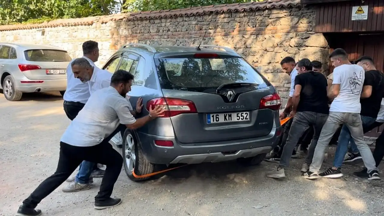 Bursa'da işletmeci ile mülk sahibi arasında çıkan kira kavgası müşterileri mağdur etti. Anlaşamayan ikili arasında tartışma kavgaya dönüşünce hastanelik olan mülk sahibinin aracı otoparkın girişinde kaldı. Araçlarıyla birlikte 7 saat mahsur kalan müşteriler ise yaklaşık vatandaşların ve çalışanların yardımıyla çekilen araç sonrası çıkabildi. O anlar ise kameraya yansıdı.