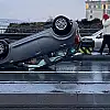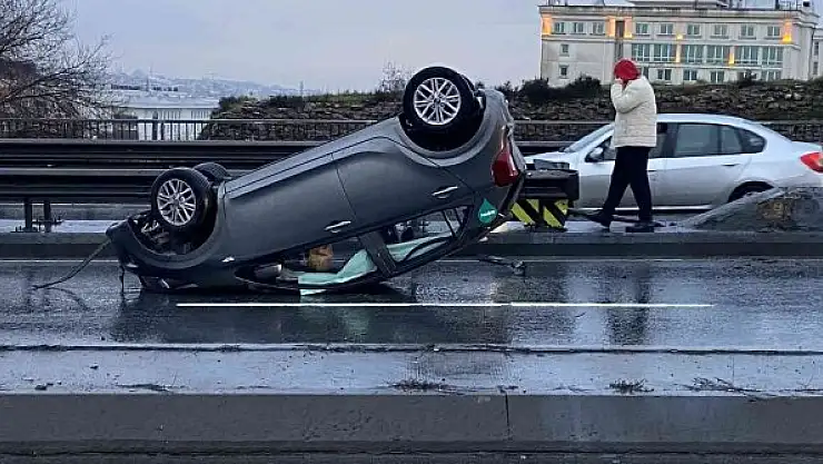İstanbul Fatih'te sürücüsünün direksiyon hakimiyetini kaybettiği kazada, otomobil refüje çarparak takla attı. Kiralık olduğu öğrenilen araçtan sürücü burnu bile kanamadan çıkarken, kaza nedeniyle yolda trafik oluştu.