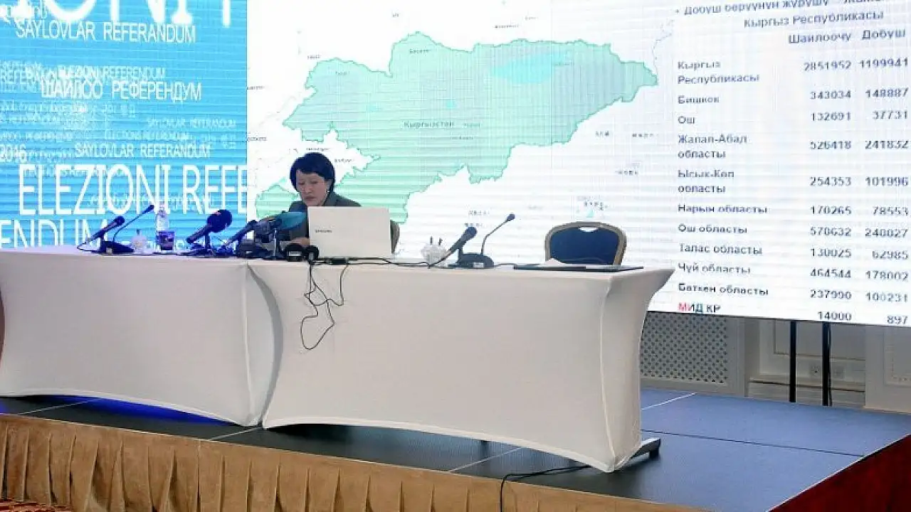 Kırgızistan Merkez Seçim Komisyonu (MSK) Başkanı Nurjan Şaildabekova, Bişkek'te düzenlediği basın toplantısında, internet üzeriden seçim merkezlerinden gelen son bilgilere göre anayasa değişikliğinin yüzde 79,7 oyla kabul edildiğini açıkladı.