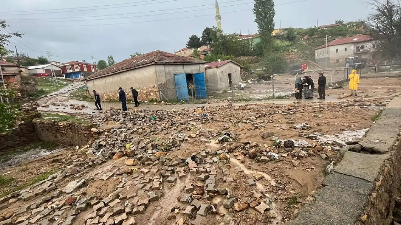 Kırıkkale'nin Keskin ilçesinde şiddetli sağanak ve dolu yağışı nedeniyle bazı ekili araziler zarar gördü, köy yollarında hasar oluştu.
