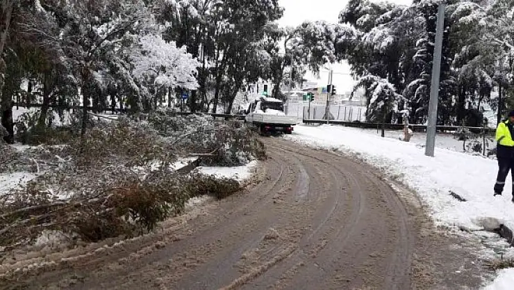 Kocaeli Büyükşehir Belediyesi, etkili olan yoğun kar yağışı sonrasında kırılan ağaç dallarını toplayarak kazaların önüne geçiyor.