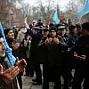 Simferepol'de protesto gösterisi yapan bir grup Kırım Tatarı, Başbakan Erdoğan'ı ve Türkiye'yi överek, 'Erdoğan gibi bir lider istediklerini' ifade etti.