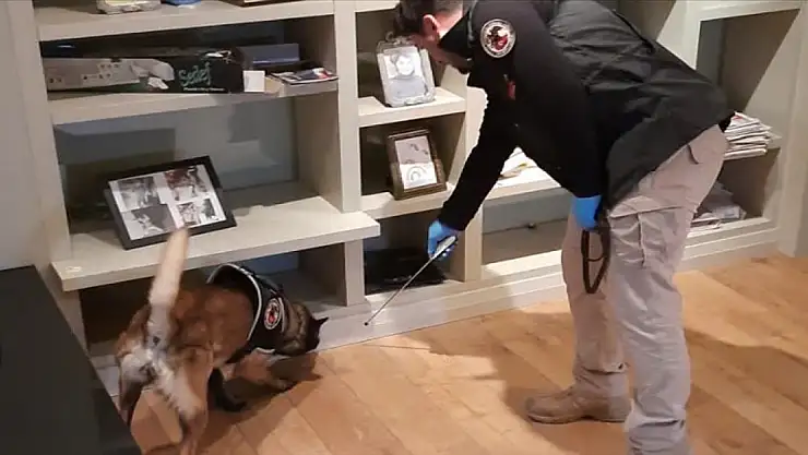 Adresteki arama sırasında, "Rio" ve "Athena" isimli iki köpek, tuvalet duvarının arkasına gizlenmiş 2 kripto cep telefonunun yerini tespit etti. Villadaki aramada, 2 tabanca, uzun namlulu silah, tüfek, çelik yelek ile bir miktar para ele geçirildi.