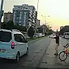 Öte yandan meydana gelen olay, kırmızı ışıkta bekleyen başka bir aracın kamerasına saniye saniye yansıdı. Görüntüde, araçlara kırmızı, yayalara yeşil ışık yandığı esnada biri bisikletli 2 kişinin yaya geçidinden geçmek istemesi, bu esnada kırmızı ışıkta yola devam eden aracın yayaların hemen önünden hızla geçmesi ve yayanın durumu fark edip durarak sürücüye yavaşlamasını işaret ettiği görüldü.