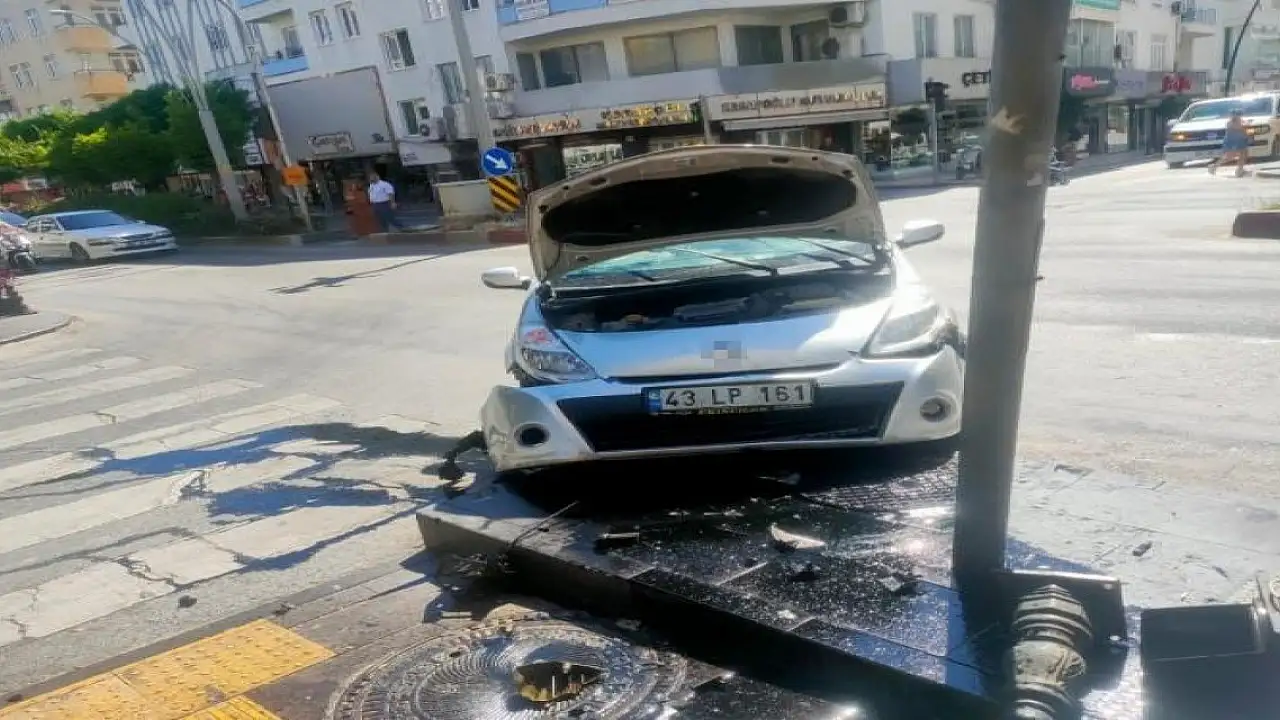 Kaldırıma çıkan otomobil metal dubayı yıktıktan sonra trafik lambasının direğine çarptıktan sonra durabildi. O anlar güvenlik kameralarına yansıdı.