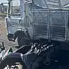Kırmızı ışıkta bekleyen motosiklete arkadan gelen kamyon çarptı.