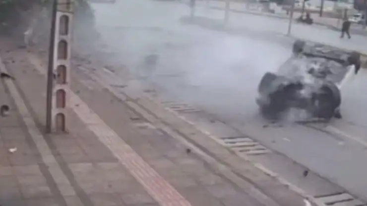 Kaldırımdaki Sultan Sedef (33) ve Suriye uyruklu Mahmut Alhacim'e (33) ile ağaçlara çarpan araç devrildi