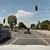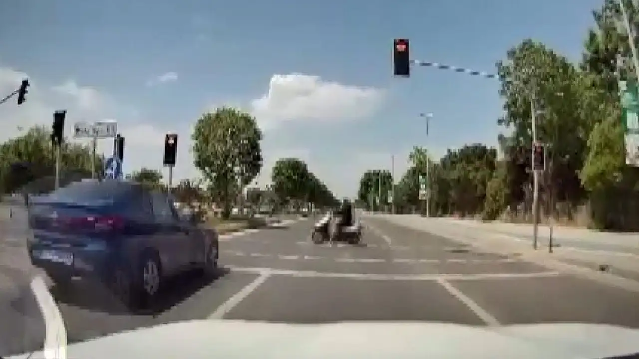 Kırmızı ışıkta geçti motosikletli kazadan kıl payı kurtuldu