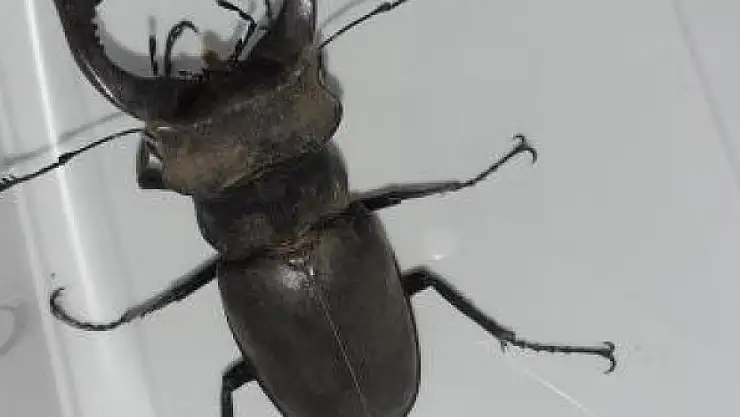 Türkiye'de nesli tükenen türler arasında kırmızı listede bulunan geyik böceği (Lucanus cervus) Adıyaman'da görüntülendi.