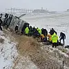 Alınan bilgiye göre, Kırşehir'den Ankara yönüne giden, sürücüsü henüz belirlenemeyen 40 LE 121 plakalı yolcu otobüsü, Kaman ilçesi yakınlarında yoğun kar yağışı ve yoldaki buzlanma nedeniyle şarampole devrildi.