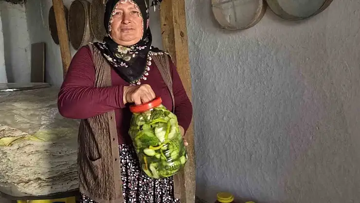 Sorgun ilçesine bağlı Alcı köyünde yaşayan Raziye Gök, her yıl olduğu gibi bu yıl da ev yapımı turşularını ve doğal biberlerini hazırlamaya başladı.