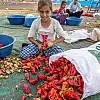 Nisanda ekilen, bakım ve sulamanın ardından ağustosta hasat edilmeye başlanan biberleri alan Şanlıurfalılar, Haliliye ilçesine bağlı Sırrın Mahallesi'nde oluşturulan alanda biberleri yıkadıktan sonra sap ve çöplerinden arındırıyor.