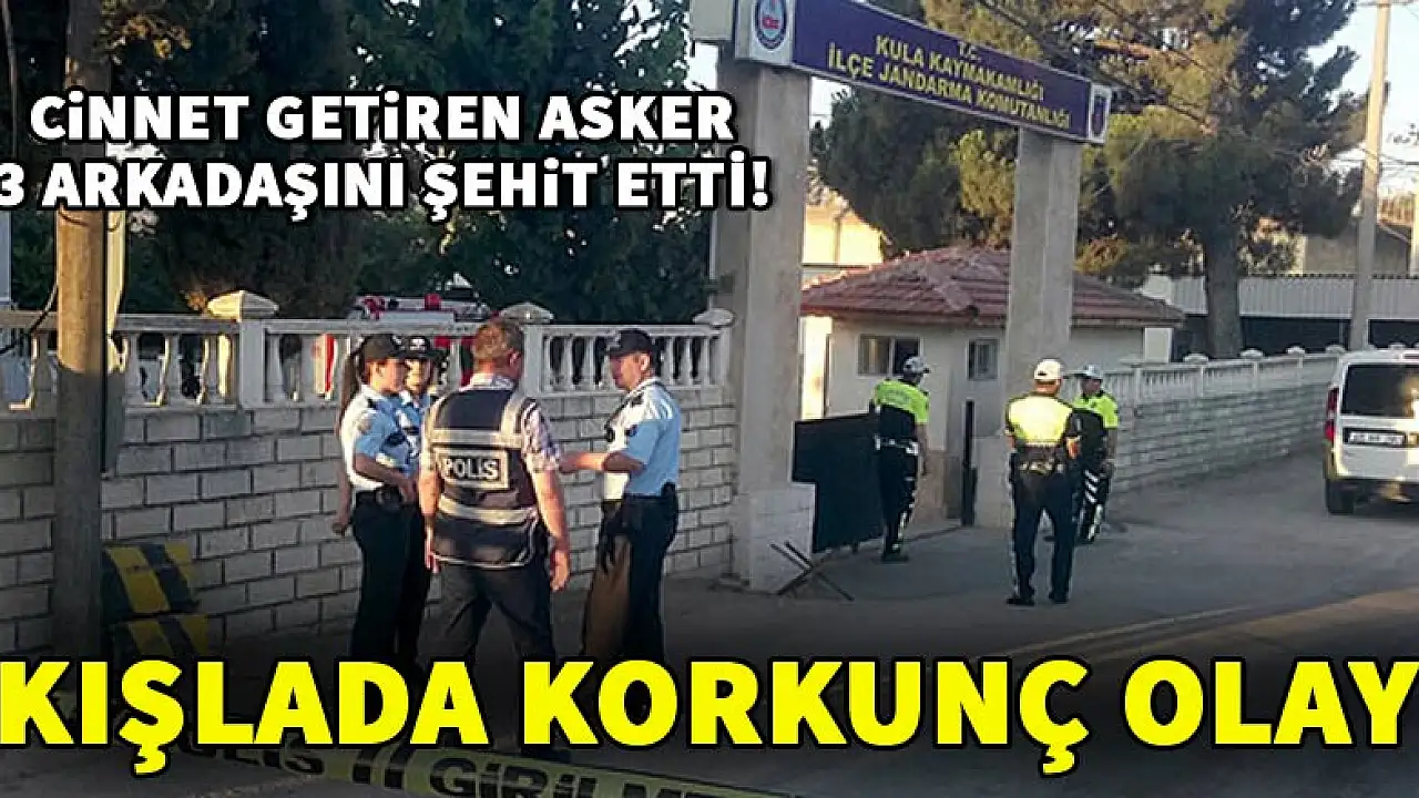Manisa'nın Kula İlçesi Jandarma Karakolunda görev yapan bir er cinnet geçirdi. Elindeki otomatik piyade tüfeği koğuşta uyuyan erlere ateş açarak 3 silah arkadaşını şehit etti.