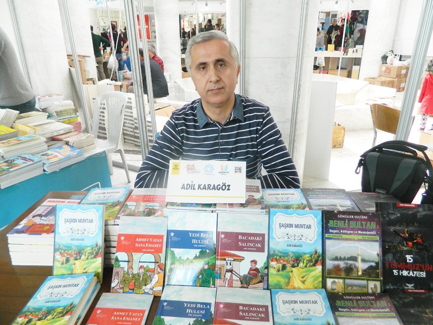 15 Temmuz’u anlatan kitabı yayınlanan ve yaklaşık 22 yıldır yazar olan Adil Karagöz; “1995 ‘den beri değişik dergilerde düz yazı ve hikâyelerim yayınlandı. Şu anda yayınlanmış 14 kitabım var. En son kitabımda 15 Temmuzun 15 Hikâyesi adını verdiğim bir çalışma. 15 Temmuz’un 15 Hikâyesi çocuk ve yetişkinlere göre bir kitap. Kitap fuarı çok güzel. Hedef kitlesi okuyucu kitlesi baya heyecanlı. Kitap fuarları insanların okuyucuların, kitaplara ve yazarlara ulaşabilmesi bakımından gençlere kitapları sevdirilmesi bakımından bu fuarlar çok önemli. Organize edenlere ve emeğe geçenlere teşekkür ediyorum. Gördüğüm kadarıyla Konya halkı kitaplara karşı çok ilgili inşallah alınan kitaplar okunuyordur. 15 Temmuz’un 15 Hikâyesi o gece yaşamış gazilerimiz ve yakınlarıyla görüşerek hazırladım. O gecenin gelecek nesillere şiir yoluyla, hikâyelerle ulaştırılması lazım o gece Türkiye çok önemli bir dönemeçten geçti. Adına darbe deniliyor ama darbe kelimesi çok çok hafif kalıyor. O yüzden bu eserlerin okutulması lazım. Çocuklarımızın geleceğimizin o gece neler yaşadığımızı bilmesi gerekir ki bir daha öyle bir şey yaşamayalım. Allah bir daha böyle bir gece yaşatmasın.” şeklinde konuştu.