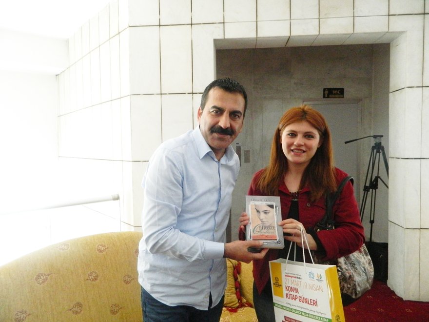 Uzun yıllar gazetecilik yapan, muhabirlikten köşe yazarlığına oradan en son roman yazarlığına kadar gelen yazar Sinan Akyüz; “Gazeteciyken aynı zamanda eserler çıkarıyordum. O günden bugüne 13 kitap çıkarttım ve bugünlere kadar geldik. Beni mutlu eden şey şu ‘Biz kitap okumayı sevmiyorduk sizin sayenizde kitap okumaya başladık.’ ‘Biz sizin kitaplarınız da yaşıyoruz’ yorumları. Bende yazarken yaşıyorum. Yazarken benim yüreğime dokunduğu için aynı duyguları karşı tarafa geçiriyorum. Konya kitap fuarı bence çok başarılı bir fuar. Bu yıl fuarı kim düzenlediyse herkese çok teşekkür ediyorum. Okurla yazar arasında bir köprü bu fuarlar. Özellikle bu konuda Anadolu’da iki şehir var. Konya’da bu şehirlerden bir tanesi. Buradaki öğrenci kitlesi olsun, halk kitlesi olsun, memur kitlesi olsun bu fuar bir nebze de olsa insanlara heyecan veren bir alan. Bence çok başarılı bir fuar inşallah devamı gelir.” ifadelerini kullandı.