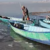Güneşin yüzünü gösterdiği saatlerde limana gelen balıkçılar, kalaslarla dakikalarca buz kırma mesaisi yapıyor.