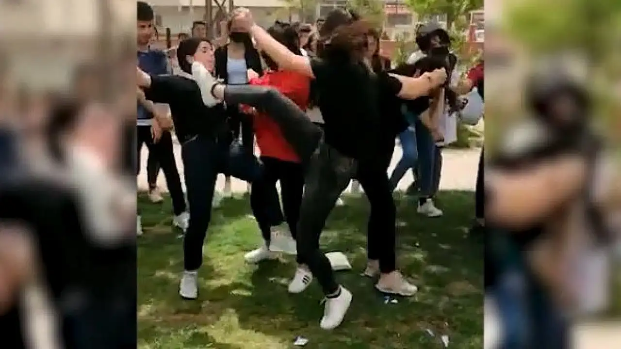 Kız öğrenciler parkta tekme tokat kavga etti