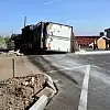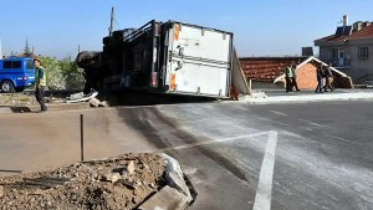 Konya'nın Akşehir ilçesinde, kızartma yağı yüklü kamyonun devrilmesiyle 1 kişi yaralandı.