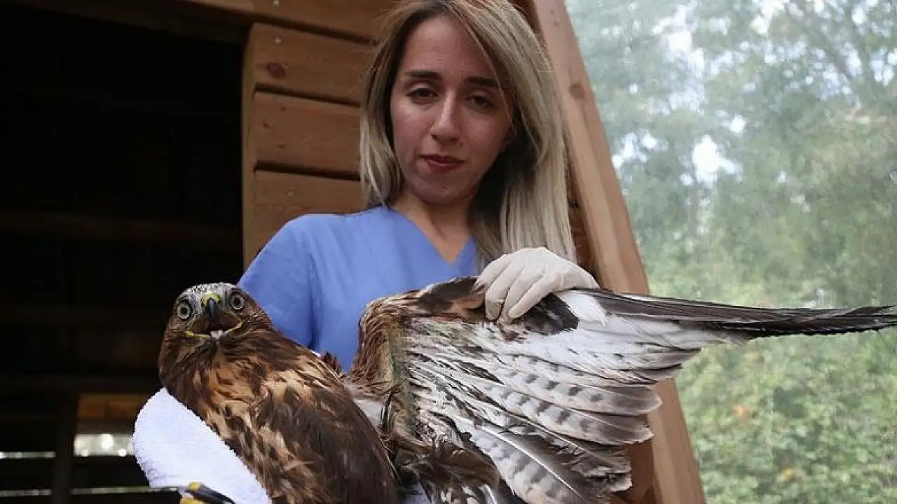 Kızıl şahinin kırık kanadına metal pim takıldı