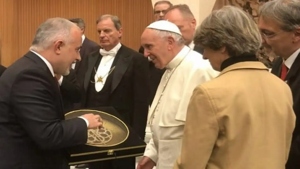 Türk Kızılayı Genel Başkanı Dr. Kerem Kınık, Vatikan ziyaretinde Papa'ya Osmanlı saati hediye etti