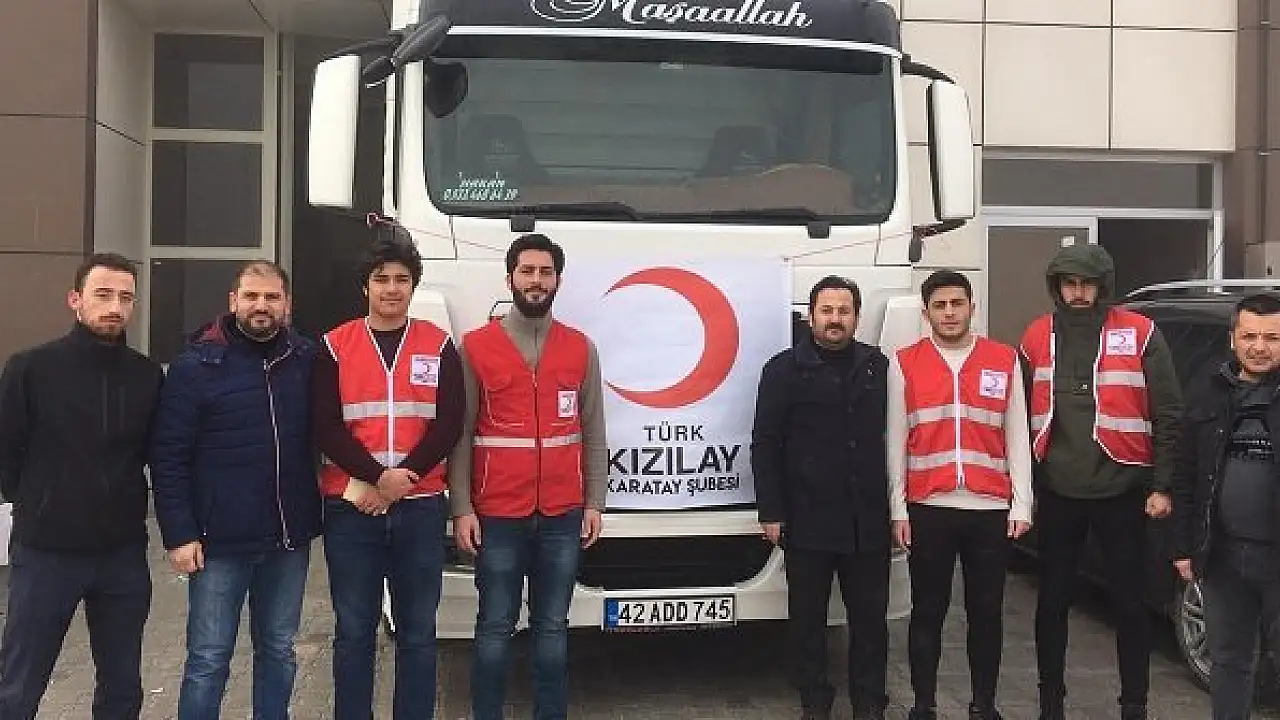 Karatay Kızılay Şubesi tarafından hazırlanan bir tır yardım malzemesi Altınekin Taşıyıcılar Kooperatifinin desteğiyle Elazığ'a gönderildi.