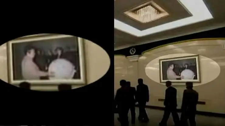 Kamera toplantının yapıldığı binada çekim yaparken duvarda bulunan ve Kuzey Kore'nin silah sanayisi alanındaki başarılarını gösteren çeşitli fotoğrafları da kaydetti.
