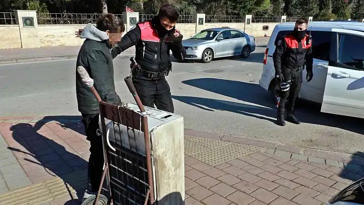Antalya'da çaldığı klima motorunu el arabasıyla taşıyan hırsızlık şüphelisi, vatandaşların dikkati sayesinde yakalandı. Klimayı çaldığı adresi cep telefonundan görüştüğü polis memuruna ayrıntılı şekilde tarif eden zanlı, kendisini görüntüleyen gazetecilere de "Dayı çekme, senin hakkın var mı böyle çekmeye" diyerek tepki gösterdi.