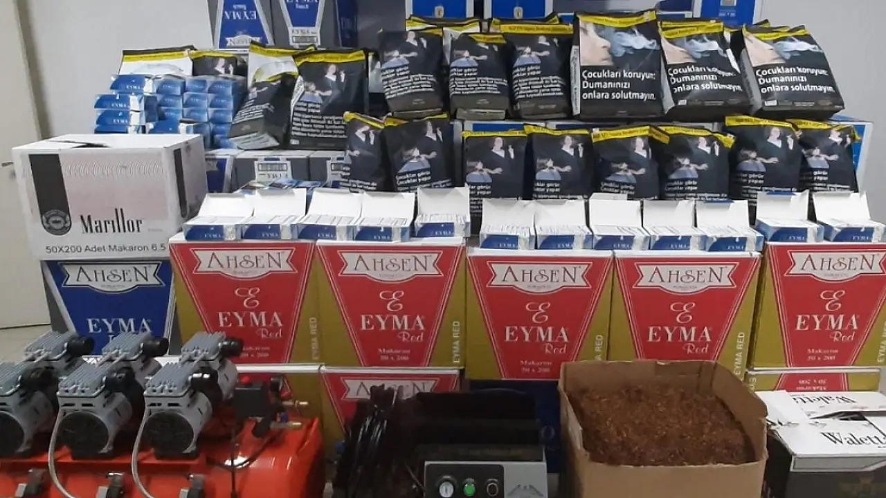Dilovası ilçesinde durdurulan araçta ve bir evde yapılan aramada, 900 bin boş makaron, 100 bin dolu makaron, 40 kilogram kıyılmış tütün, 31 paket halinde 1 kilogram ambalajlı tütün, hava kompresörü ve elektrikli sigara sarma makinesi ele geçirildi.