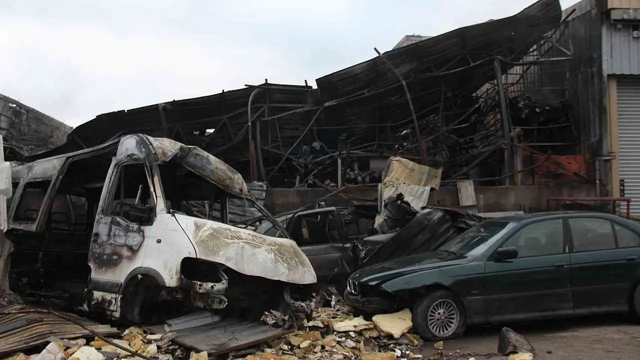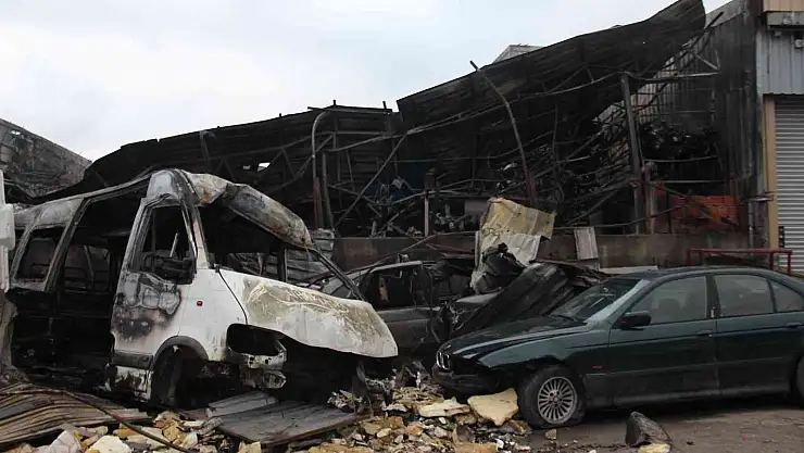 Öte yandan, 7 iş yerinin kullanılamaz hale geldiği yangının hasarı gündüz görüntülendi. Bölgede yangın ile ilgili incelemelerin devam ettiği öğrenildi.